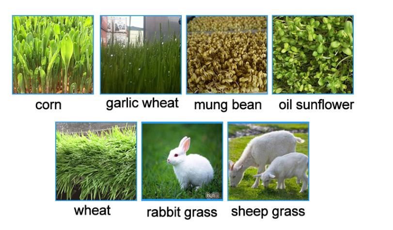 hydroponic fodder machine is suitable for most grains and seeds, like barely grass, wheat grass, alfalfa grass, oats, sunflowers, mung beans, garlic,vegetables sprouting and growing. It is widely used by ranchers for animal husbandry.