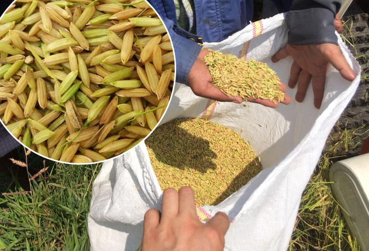 Our technician start to Demonstrate the operation for harvester,the bag filled with paddy soon.